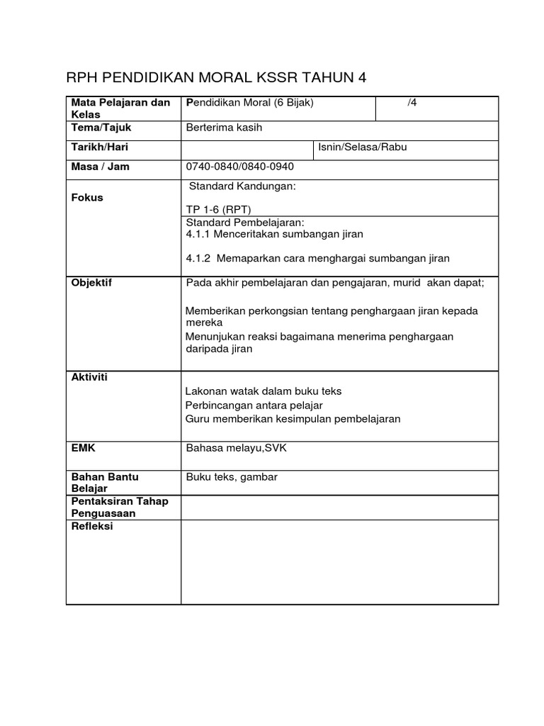 Related : Rph Bi Tahun 4 : Contoh rancangan pelajaran harian :.