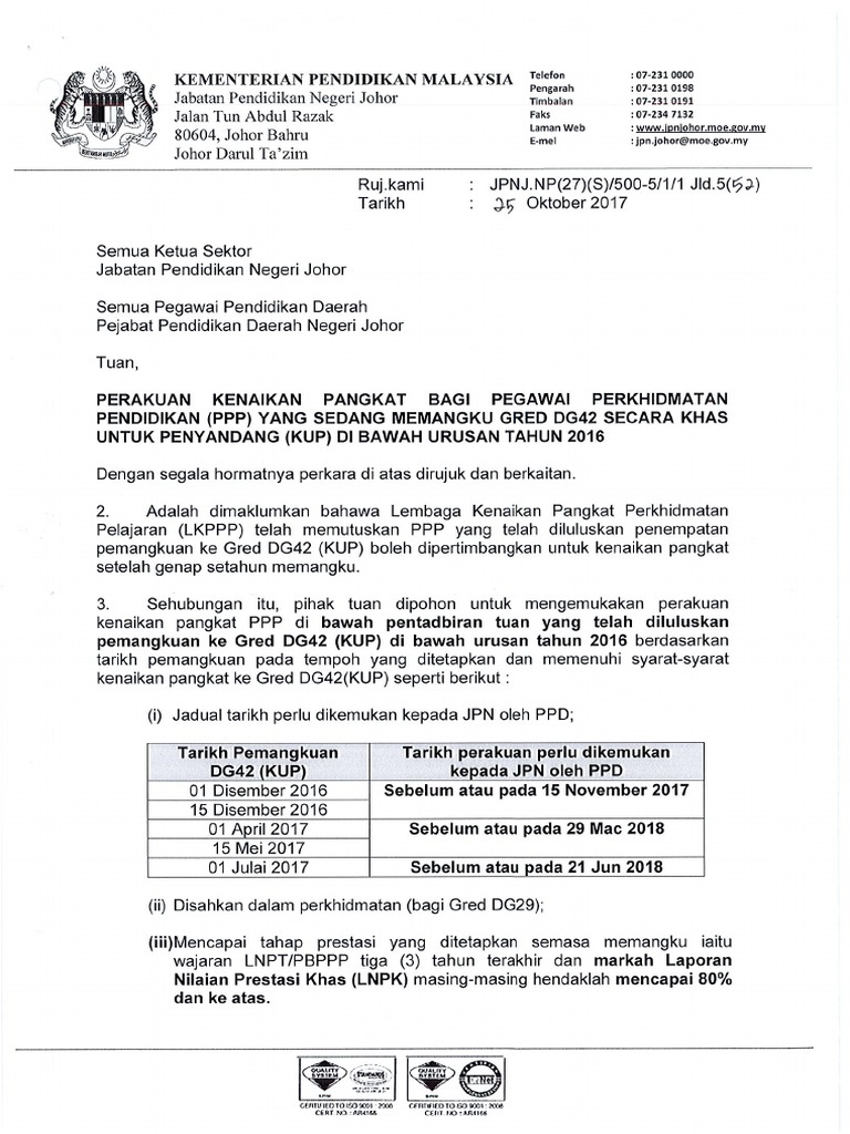 Semakan Kenaikan Pangkat 2017 : Maklumat lanjut dan pertanyaan mengenai semakan kenaikan pangkat guru, anggota pegawai perkhidmatan kpm, sila rujuk dan hubungi butiran yang disediakan berikut
