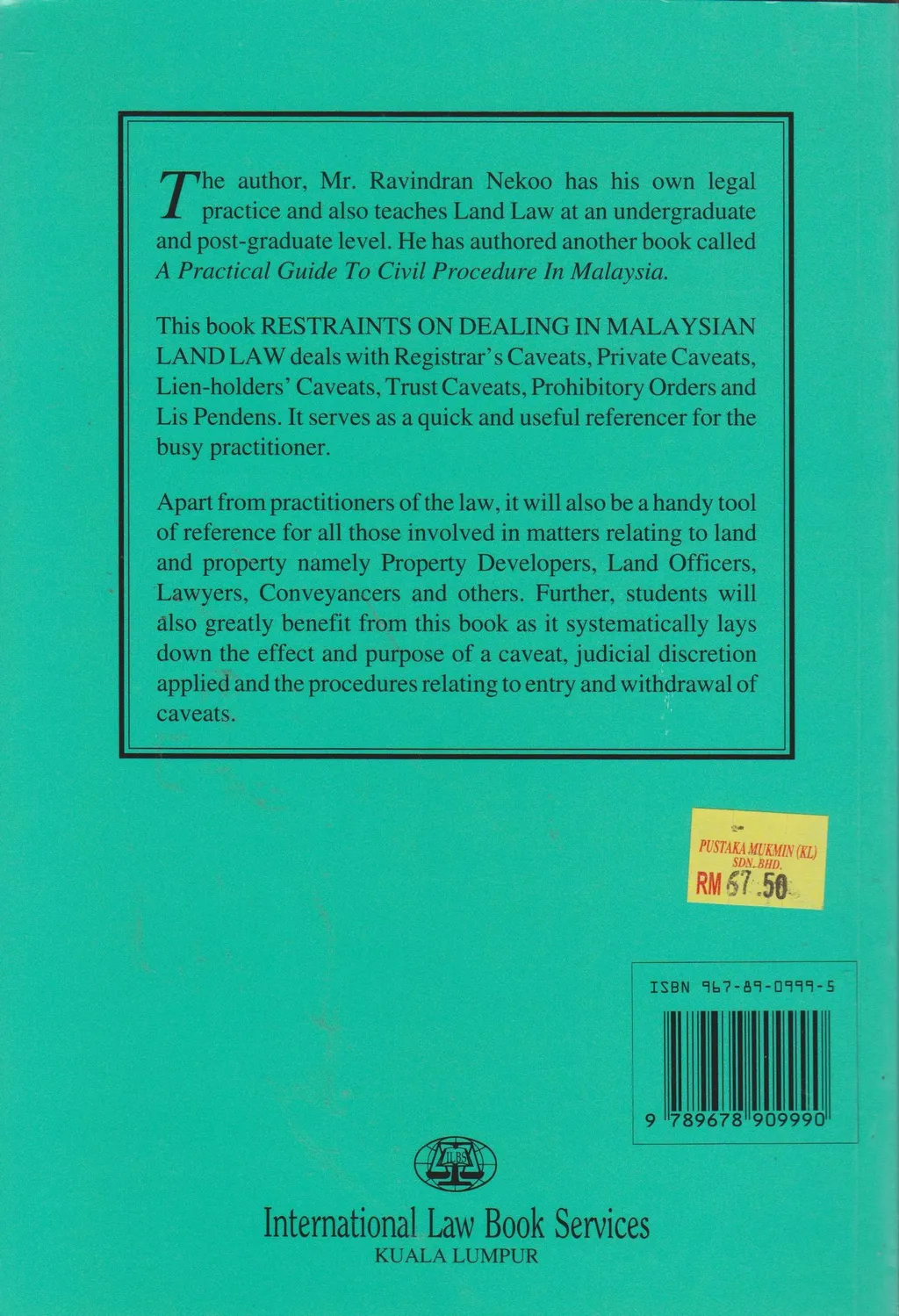Restraints On Dealing In Malaysian Land Law Pustaka Mukmin Kl Malaysia S Online Bookstore from cdn.store-assets.com There are two reasons for this. A brief history of malaysian land law. It is useful for those interested to know more about the torrens system as applicable in the malaysian land administration system. Laws of malaysia act 474 land development act 1956 an act to provide for the establishment of a federal developmentauthority and local development boards to promote and carry outprojects for land development and settlement, for making funds availabletherefor, and for purposes connected therewith. I n 1913, the british colony in malaya introduced the malay reserve land (mrl) law to our homeland, long before merdeka day, 31st of august 1957. The law dealing with compulsory acquisition of land in malaysia is the land acquisition act, 1960 (laa). Problems however arise when disputes over these malay customary transactions are litigated before the malaysian courts. Malaysia land law is based on the torrens system of registration which should make land ownership very clear and neat, but there are some legacy issues from english land law, which is based on equitable ownership.
